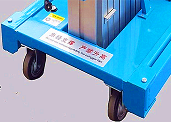 整體采用高強度鋁型材精制而成,升降平穩適合單人或雙人高空作業,三柱鋁合金升降機動力分為220V、 380V,或電瓶動力源,特殊環境也可采用防爆泵站及防爆電器。其特點:整機重量輕,機動性好,適合單人操作;特制的桅柱間導輪裝置,升降平穩自如;結構緊湊,運輸狀態尺寸小,可進入一般電梯的轎廂以及能順利通過門洞和狹小通道;雙重保護的支腿結構,工作更安全,且可貼近工作面升降作業;根據使用場所高的要求,可做成電動放倒式升降平臺。以滿足門口比較低時使升降平臺無法進入的情況。該系列產品多為室內型,廣泛適用于星級酒店、大型超市等各行業大廳、廠房內的高空作業,如機具保養、油漆裝修、調換燈具、清潔保養等。
